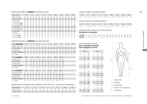 KÖRPERMAßTABELLE DAMENBERUFSBEKLEIDUNG UNISEX-GRÖßEN IN DAMENGRÖßEN 149